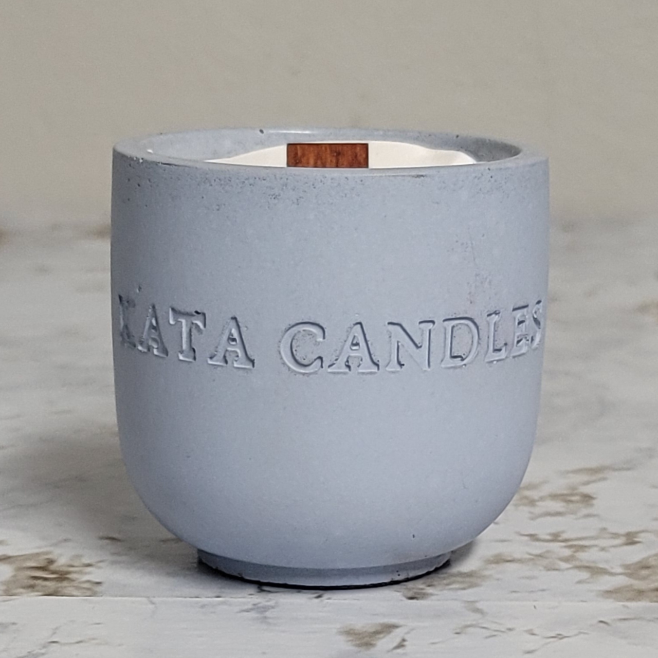 - Materials: Soy Wax, Wood Wick, Handmade Concrete Vessel (Periwinkle Color), Natural Fragrance Oil