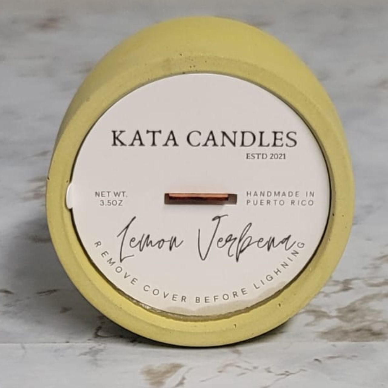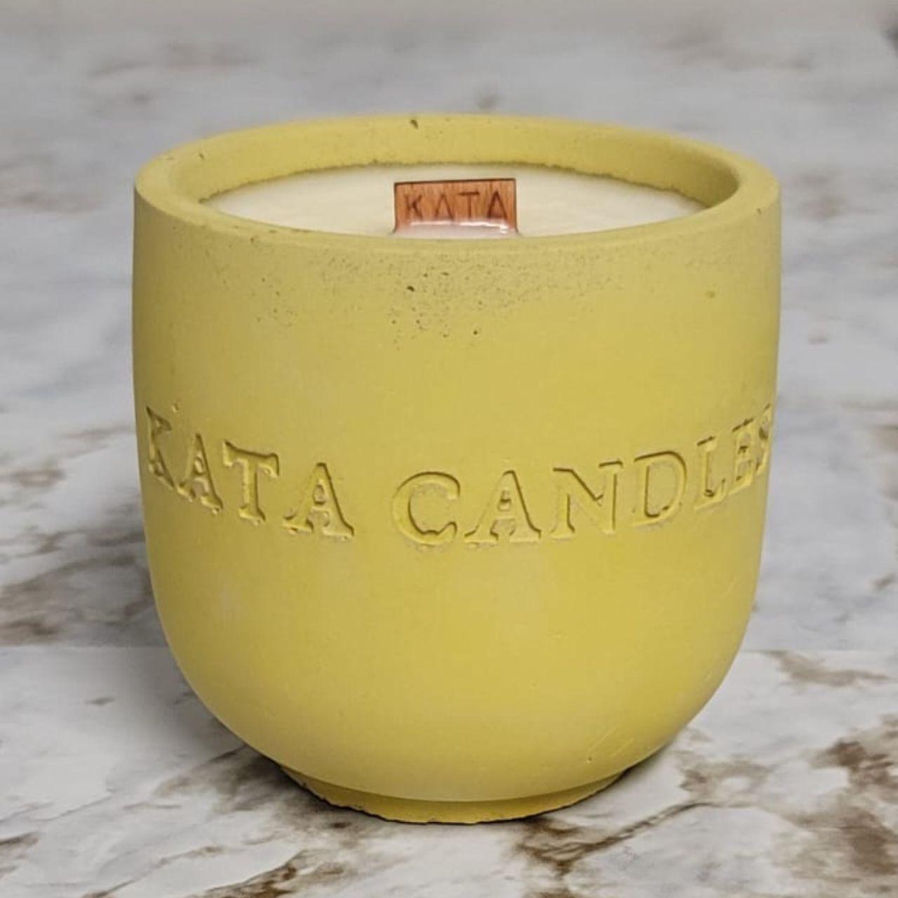• Materials: Soy Wax, Wood Wick, Handmade Concrete Vessel (Yellow Color), Natural Fragrance Oil