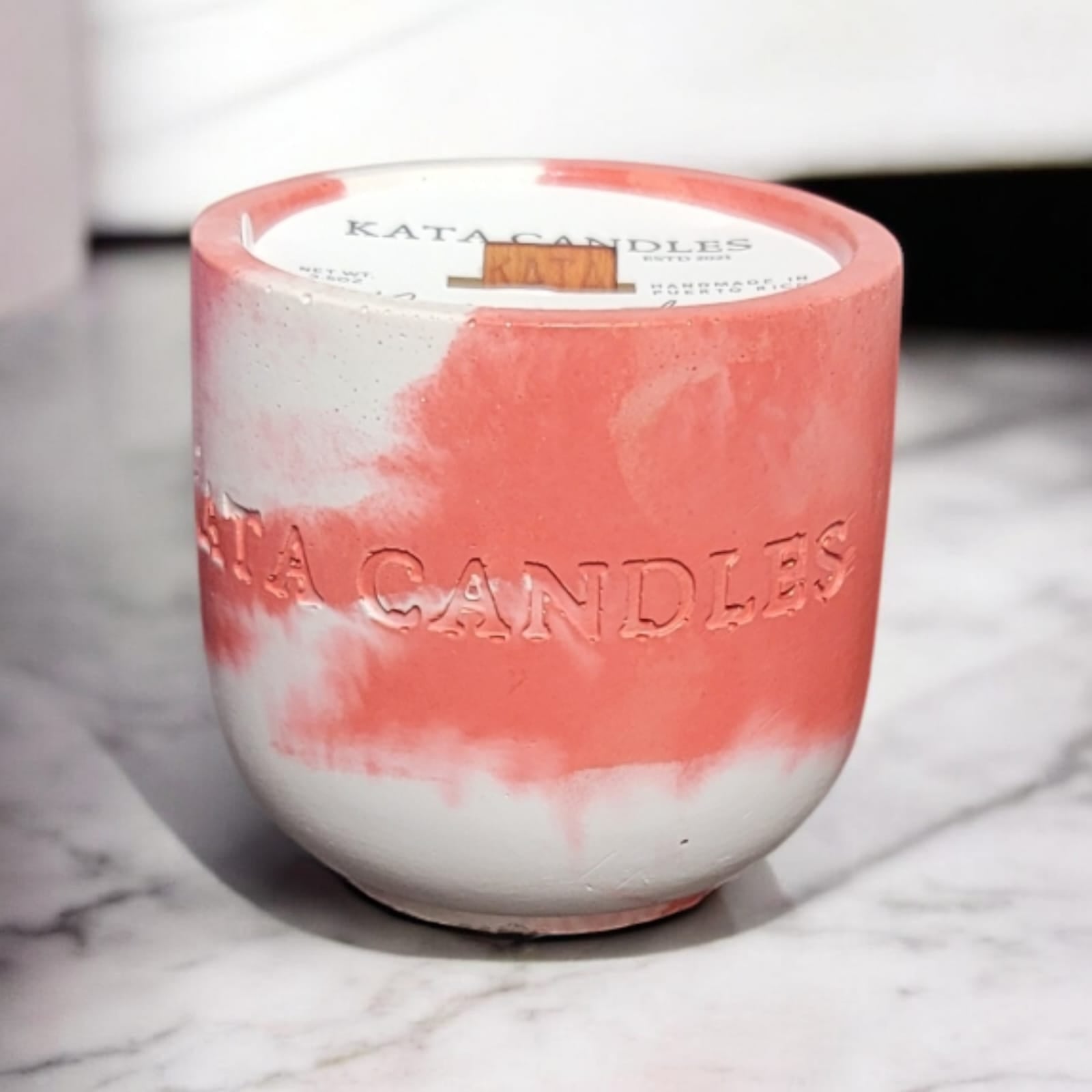 - Materials: Soy Wax, Wood Wick, Handmade Concrete Vessel (White and Red Color), Natural Fragrance Oil